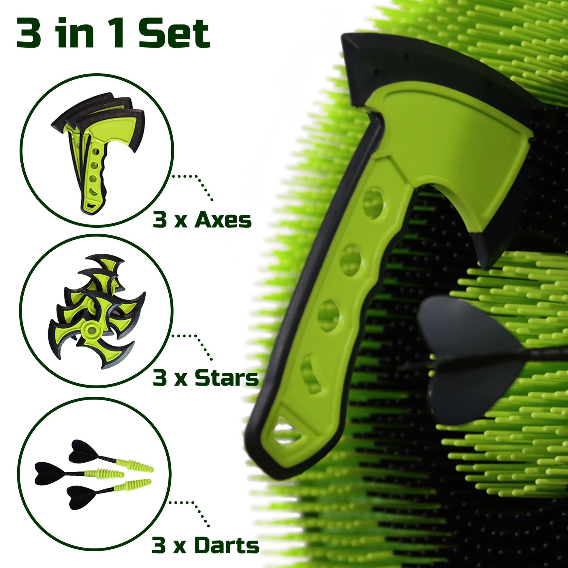 3-in-1 Bristle Axe Target Board Game Set